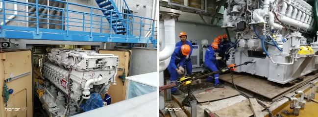 柴油機抵達現(xiàn)場后,工程公司與業(yè)主、施工單位、廠家嚴格執(zhí)行作業(yè)方案和施工計劃,施工單位各作業(yè)隊最大可能平行施工,在2018年6月19日具備啟動條件,提前進度計劃要求6天,在返廠維修最短記錄基礎上,又創(chuàng)造了一個回場后復裝的最短記錄!