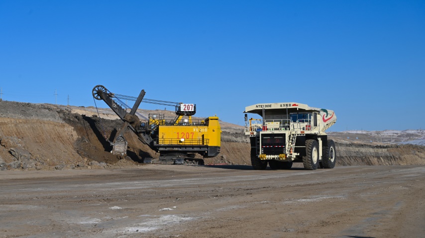 在扎哈淖爾露天煤礦生產(chǎn)現(xiàn)場,15臺120噸級純電動(dòng)輪礦用車正在有序作業(yè)。
