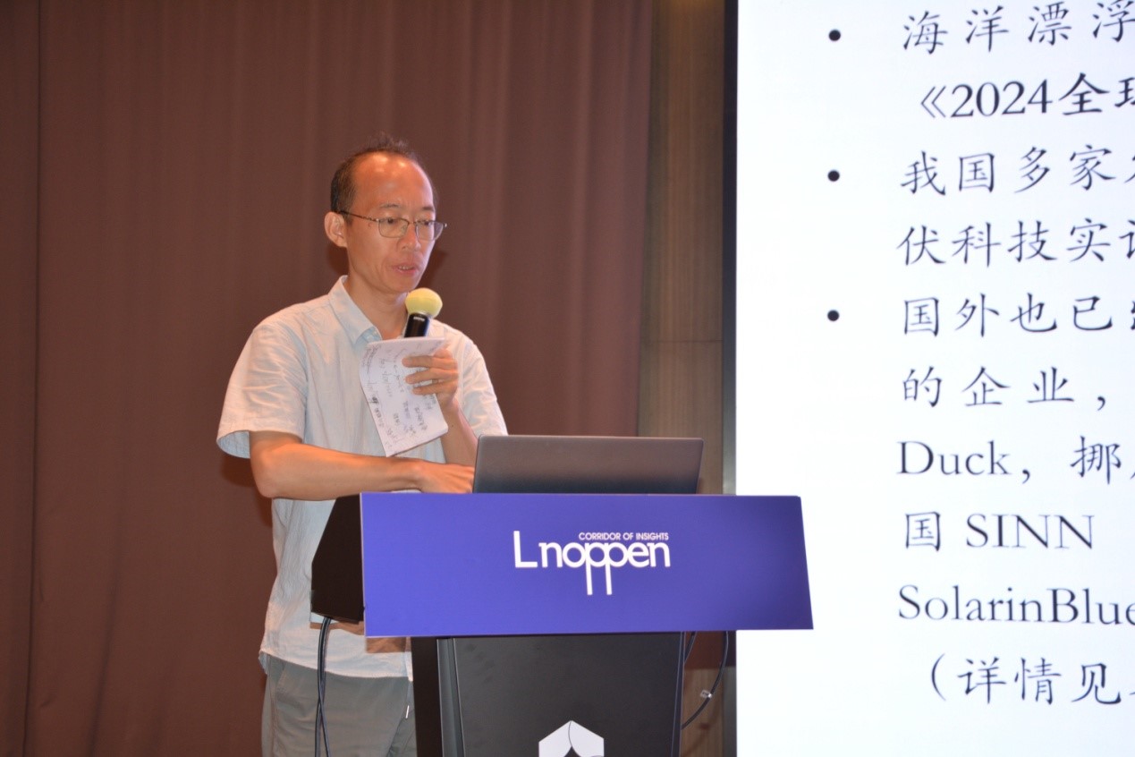 交通運輸部天津水運工程科學(xué)研究院博士趙旭發(fā)表了題為《馭光向海,風(fēng)光無限:一種可快速部署的折疊型海上漂浮式光伏解決方案TK-FFPV》的演講,分享了一種可灌輸部署的折疊平臺上漂浮式光伏解決方案TK-FFPV,并介紹了海上漂浮光伏的發(fā)展和挑戰(zhàn)。