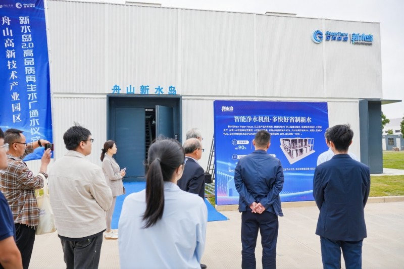 通水儀式結(jié)束后,與會(huì)人員共同實(shí)地考察了新水島 2.0 水廠。該項(xiàng)目占地面積僅 300 平方米,采用金科環(huán)境自主研發(fā)的 “新水島 2.0” 工程模塊化產(chǎn)品與 “水蘿卜 AI 智能體” 運(yùn)營(yíng)管理平臺(tái),以污水處理廠出水為水源,通過(guò) “超濾 + 反滲透” 先進(jìn)處理工藝,使供水水質(zhì)遠(yuǎn)超《城市污水再生利用 — 工業(yè)用水水質(zhì)》標(biāo)準(zhǔn),完全滿足國(guó)內(nèi)外光伏企業(yè)高標(biāo)準(zhǔn)生產(chǎn)用水需求。項(xiàng)目總設(shè)計(jì)產(chǎn)水規(guī)模達(dá) 2 萬(wàn)噸 / 天,其中一期產(chǎn)水規(guī)模 5000 噸 / 天,服務(wù)范圍覆蓋舟山高新區(qū)內(nèi)新能源、化工等重點(diǎn)工業(yè)企業(yè),目前一期產(chǎn)出的再生水已主要供應(yīng)園區(qū)內(nèi)光伏企業(yè),為當(dāng)?shù)匦履茉串a(chǎn)業(yè)發(fā)展注入了綠色動(dòng)力。