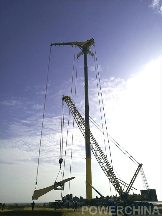 在整個(gè)吊裝過(guò)程中,現(xiàn)場(chǎng)施工人員嚴(yán)格按照安全和質(zhì)量施工要求,在地表溫度高達(dá)50攝氏度的情況下,施工人員頭頂烈日,不畏酷暑,科學(xué)組織,積極應(yīng)對(duì),每天奔波于風(fēng)機(jī)吊裝現(xiàn)場(chǎng)。通過(guò)全體人員的共同努力,在合同規(guī)定時(shí)間內(nèi)完成了全部吊裝工作。中國(guó)電建人的高超技藝和“鐵軍”精神讓OES和設(shè)備廠家紛紛豎起了大拇指,再一次提升了中國(guó)電建的品牌。