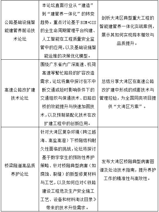 我們誠(chéng)摯邀請(qǐng)國(guó)內(nèi)外行業(yè)機(jī)構(gòu)、科研院所、建設(shè)單位、設(shè)備制造商、技術(shù)服務(wù)商等各方代表踴躍參與,共同展示新技術(shù)、交流新理念、拓展新合作,攜手把握大灣區(qū)發(fā)展機(jī)遇,賦能公路行業(yè)邁向更高質(zhì)量、更有效率、更可持續(xù)的未來(lái)!