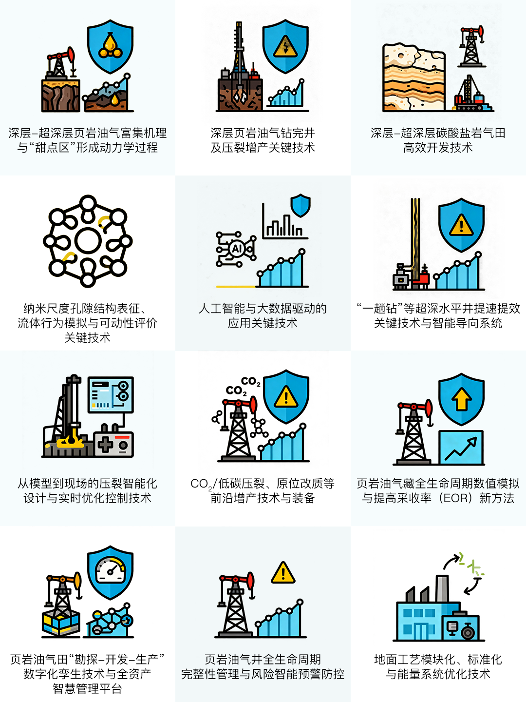3. 深層頁巖油氣鉆完井及壓裂增產(chǎn)關(guān)鍵技術(shù);