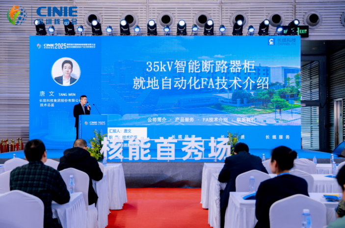本屆核博會(huì)特設(shè)“核能首秀場(chǎng)”活動(dòng),為核能行業(yè)新成果、新技術(shù)提供展示平臺(tái)。長(zhǎng)纜科技電氣子公司發(fā)表“35kV 智能斷路器柜就地自動(dòng)化 FA 技術(shù)”的專題演講,圍繞技術(shù)原理、核心優(yōu)勢(shì)、應(yīng)用場(chǎng)景及實(shí)踐成效展開(kāi)深入分享。該項(xiàng)技術(shù)能有效強(qiáng)化新能源電力系統(tǒng)及電力網(wǎng)絡(luò)的供電穩(wěn)定性,提升運(yùn)維效率。