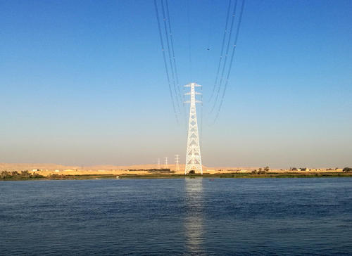 埃及EETC500千伏主干網(wǎng)升級改造輸電工程。圖為輸電線路跨越尼羅河,國家電網(wǎng)公司按照建設(shè)“一帶一路”標(biāo)桿工程開展項目履約。