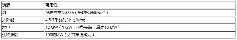 莫桑比克擁有相當(dāng)??大的能源資源,估計水電潛力為12,000兆瓦,天然氣儲量(估計達(dá)到7000億立方米)和巨大的煤炭儲量(估計達(dá)到1.4億TJ),有可能產(chǎn)生約。分別為500兆瓦和5,000兆瓦。