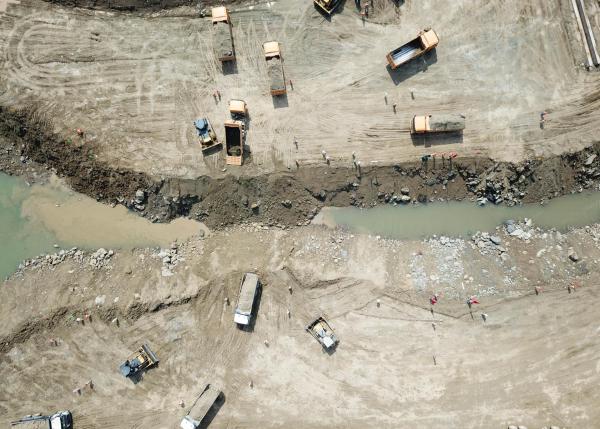 9月22日,在巴基斯坦旁遮普省卡洛特地區(qū),卡洛特水電站項目正在進(jìn)行大江截流作業(yè)。新華社記者劉天攝